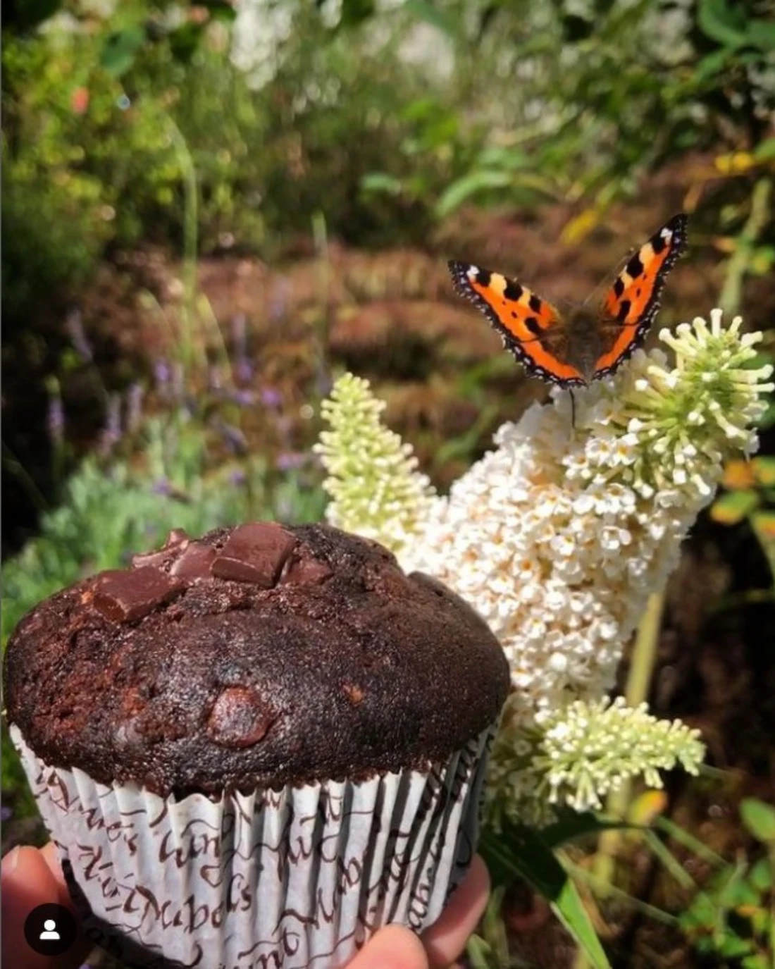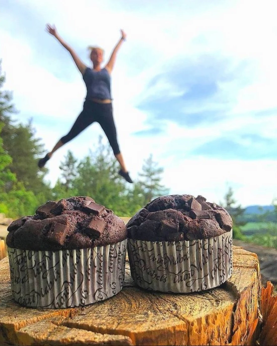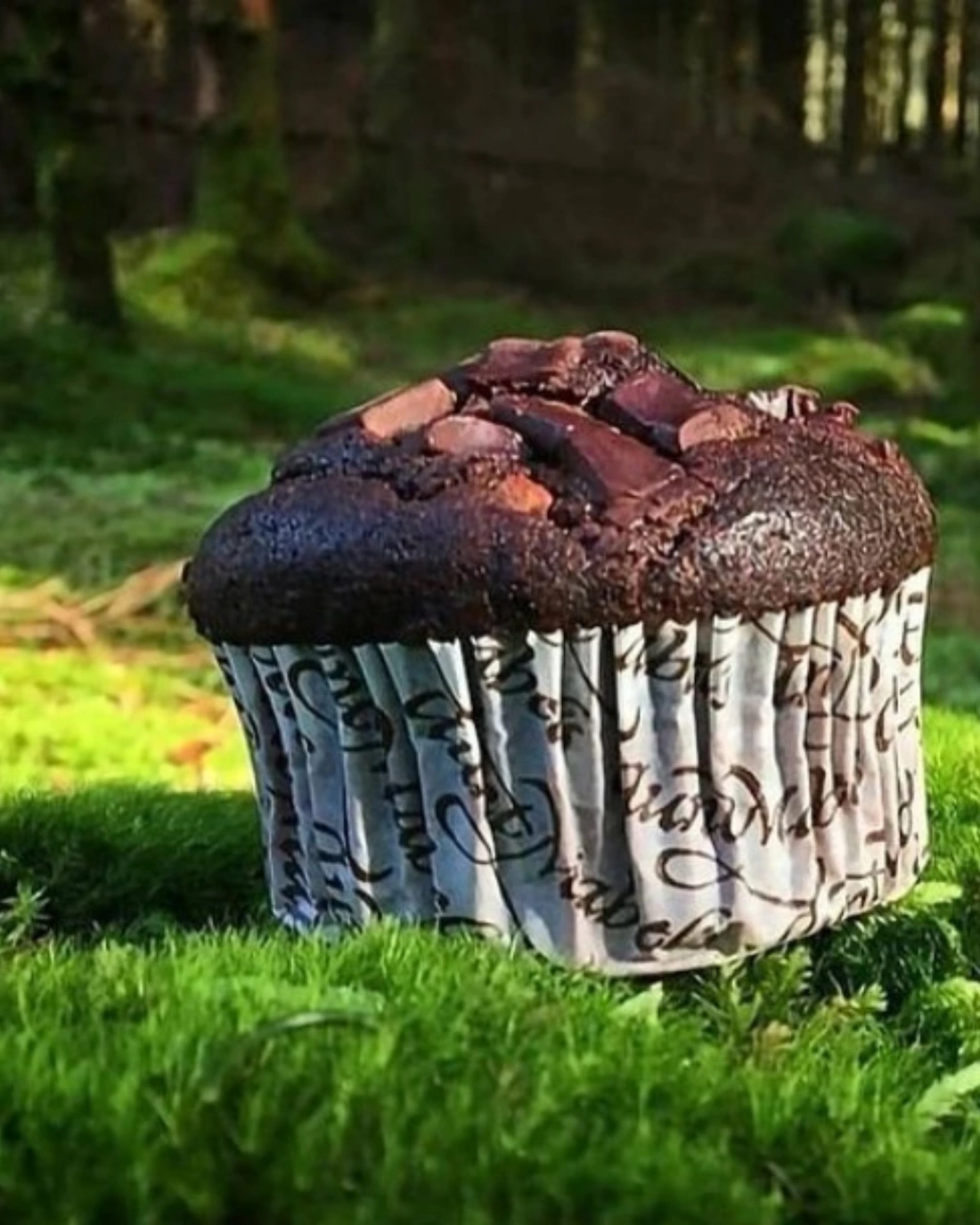 Muffin pâtissier aux œufs frais, morceaux de chocolat noir et de chocolat au lait