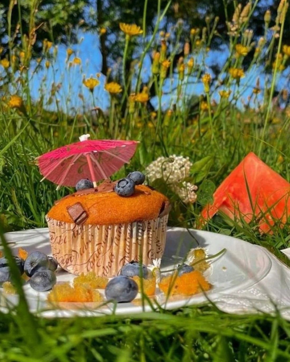 Muffin pâtissier aux œufs frais, myrtilles entières