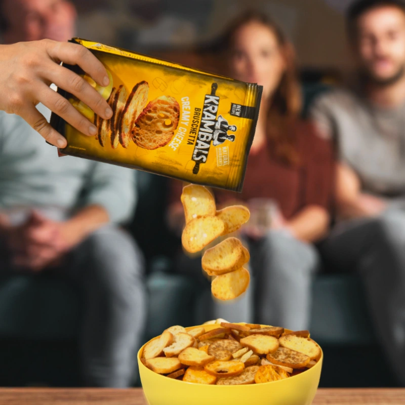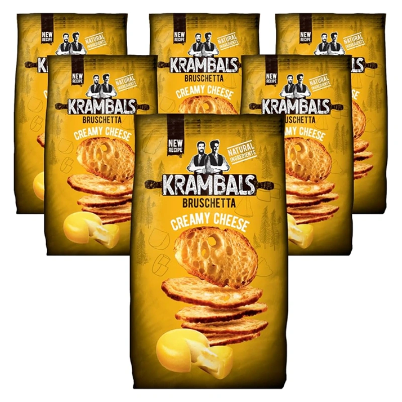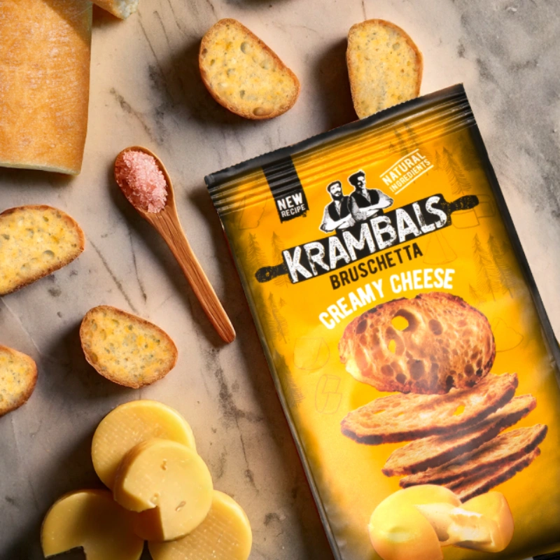 Découvrez les bruschettas Krambals Fromage, réalisées à partir de véritables tranches de pain ciabatta artisanales, croustillantes et dorées. Une recette fondante et savoureuse aux ingrédients naturels, sans conservateurs ni huile de palme, parfaite pour l’apéritif.