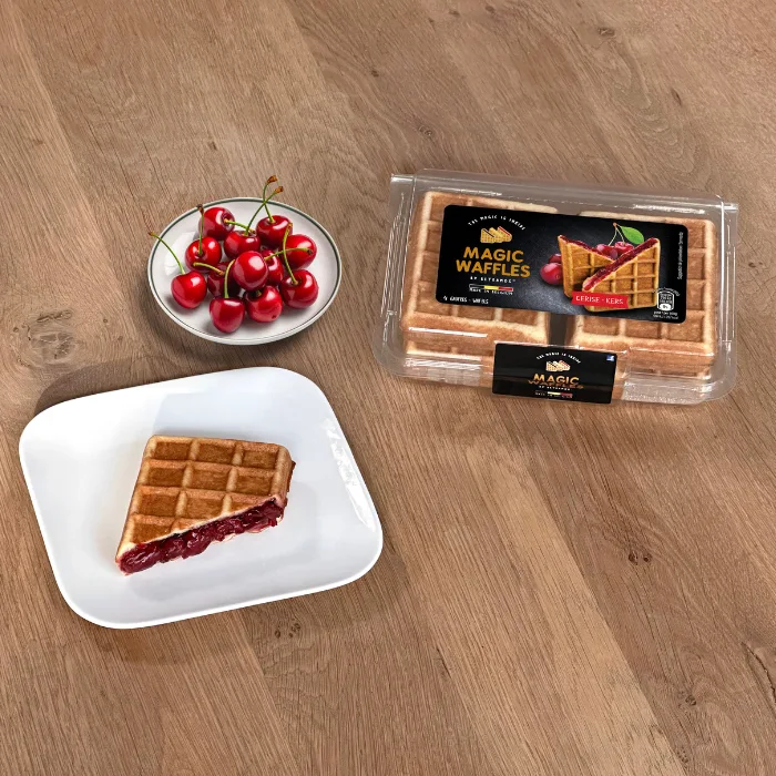 Gaufres belges fourrées à la cerise, moelleuses et gourmandes.
