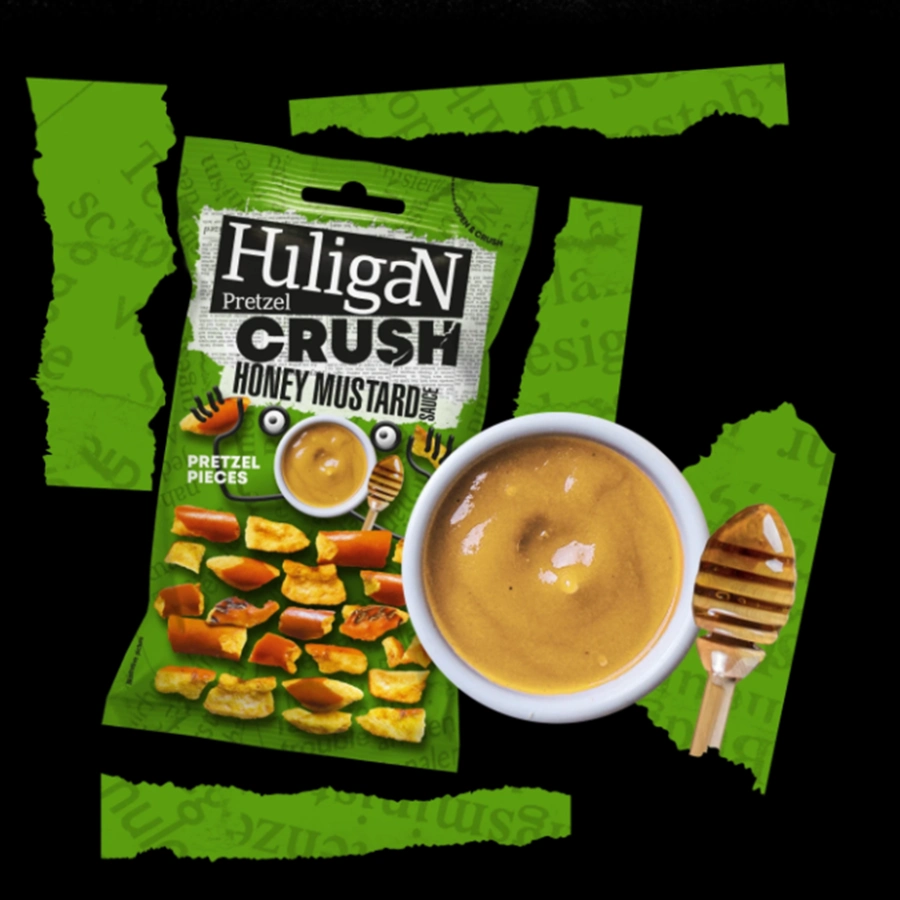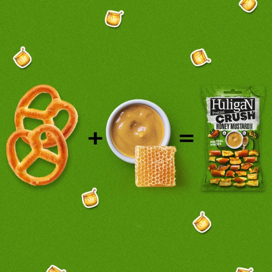 La douceur du miel, le piquant de la moutarde, le crunch en plus. Ce Pretzel Crush joue sur le contraste sucré-salé avec des morceaux de bretzels cuits au four et non frits, une combinaison irrésistible qui intrigue au premier regard, fidélise dès la première bouchée et apporte une touche d'originalité à vos rayons snacking.